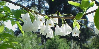 Carolina silverbell is easily grown in average, medium, well-drained soil in full sun to part shade. It prefers moist, acidic, organically rich soils in part shade. It has an irregular, spreading, open crown and yellow fall color. It suffers during drought, so it will need supplemental irrigation. Carolina silverbell is sensitive to heat, drought and soil compaction. In nature, Carolina silverbell can usually be found in moist slopes, coves, creek-banks, and bottomlands. It can be grown as a large multi-trunked shrub or trained into a small understory tree. The tree will bloom when it is only a few years old and continue blooming during its life expectancy of up to 100 years. It makes an attractive specimen plant for a lawn or in a shrub border or woodland garden and is occasionally planted as an ornamental. It can be used in a rain garden. It also looks attractive planted with rhododendrons and azaleas.
